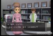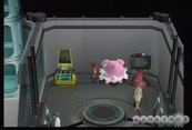 カミソコ博士の屋敷 刚想进入木屋,门口和研究员一战,战斗结束后蓝发女孩玛娜迎接主角进去,走到里屋和她交谈,她问主角时,主角看到她有个“-”极兔子,主角旁边房间正好有个“+”极兔子,女孩听了就决定和主角走一趟。