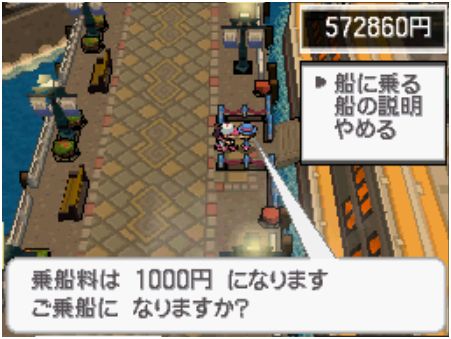 每天傍晚(不同季节的傍晚时间段请点击这里),在ヒウンシティ城市PM中心右下方,可以花1000元乘坐游轮。上甲板可以看到优美的风景。船舱内可以与NPC对战。