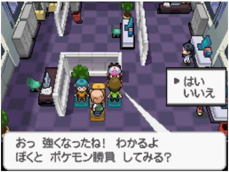 在ソウリュウシティ城市(即龙系道馆所在城市),靠近10号路连接处的一间房间中,有两位NPC会与你进行3V3对战。每日只能挑战一次。