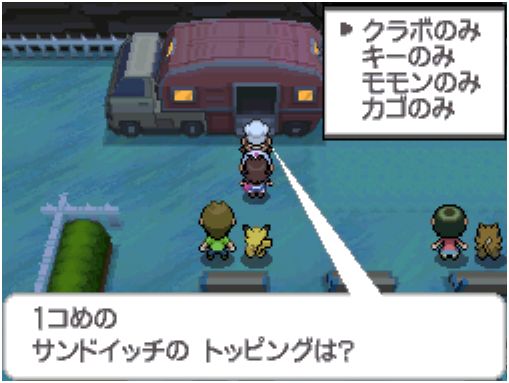 ヒウンシティ城市(即虫系道馆所在城市),PM中心左上方的道路右边的大楼中,有一个小丑要求看特定属性的PM,奖励是果实。每日一次,要求的属性也会变化。