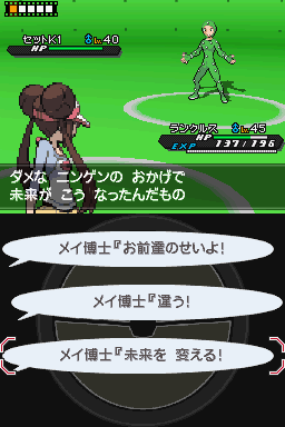 攻略:对手第一回合会用挑拨,细胞怪全是变化技所以一定要先用保护。之后台词出现选择