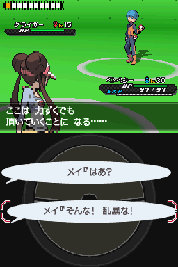 一开始朝北鼻用电磁波,依靠坚硬特性撑住(如果对方没有麻痹不能动就一直用忍耐,有麻痹则用痛苦平分),第二回合用忍耐再撑住,之后台词选择