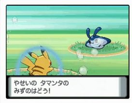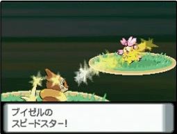 图1是飞鱼球的“水之波动” 图2是叉尾浮鼬的“高速星星” 图3是玛狃拉的新招“暗影爪”[シャドークロー,Shadow Claw](详细信息不详) 图4是鲁卡利欧的新招“近击拳”[インフアイト,In-Fight](详细信息不详)