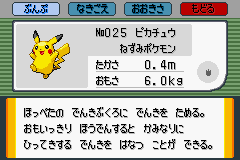 在曾经的红蓝宝石当中,有几个很令人费解的招式,比如硬化植物ハードプラント、爆裂燃烧ブラストバーン、高压水炮ハイドロカノン、高压电ボルテッカー等,因为没有任何一只宠物能通过正常升级的途径学会这些招式。随着火红草绿中三主角定点学习前3个招式,终于解决了这些疑问当中的一部分,可是高压电仍然没有找到自己所属的主人。然而,在绿宝石中,高压电终于也揭开了自己的秘密,成为了超人气宠物NO.25 ピカチュウ 皮卡丘 / NO.26 ライチュウ 雷丘 / NO.172 ピチュー 皮丘(202图鉴中的NO.155-157)的专有招式。下面就介绍一下具体的获得方式。 首先,去弄一只皮卡丘(雷丘也可以)来,最好是母的,如果是公的话需要等通关以后再去抓一只百变怪才行;所谓“弄”,你可以去狩猎区抓,就在刚进去的那片草地就有几率出现,或者也可以从别的存档里传输一只过来也行。