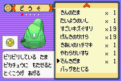 第二个条件有些苛刻,就是要得到“传说”中的道具——电珠でんきだま。这东西在抓来的野生皮卡丘身上有极小几率获得,能得到的人真的是非常幸运,实在没有那个耐心就用金手指吧(用GBA卡带玩的表打我)。