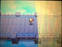 左右两侧的桥是通往附近其他玩家世界的通道,来到桥上后会自动搜索附近的其他玩家,想要成功连接必须保证对方的当前位置为ハイリンク周围一圈的城镇或道路且开启了C-GEAR 连接成功后穿过隔膜便能进入该玩家世界的ハイリンク,主角的模样也会发生改变,点击下屏中的地图可以在各个城市与ハイリンク之间进行瞬移