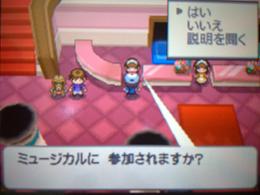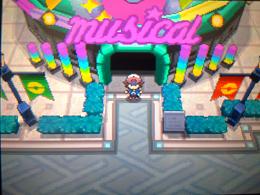 音乐会 音乐会会场位于雷门市右上角,除了单机表演外可进行2~4人通信表演 与左边柜台的服务员对话后选择红外线通信或无线通信 任一玩家选择成为领队,其他玩家均选择加入,经领队同意后即可加入 接下来与单机音乐会表演无异 完成一次通信音乐会表演后与NPC对话可以得到特殊的饰品