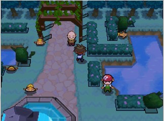 1.精灵中心往右走,遇见一个有人堵住门口的房子,与之对话,即可进屋,然后与三兄弟对话,开战。你和草男组队对抗火水两男。
