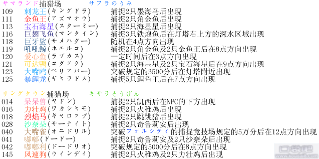 [口袋妖怪护林员]リングタウン和サマランド捕猎场特殊PM出现表