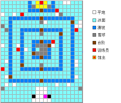 [KD8 zapdoszwq版权所有,请勿转载]一、クロガネシティ岩石道馆如图只需一直向前即可,不想打训练员可以从上面绕着走二、ハクタイシティ草系道馆这里进去后会发现馆主的位置上并没有人,其实是需要找到藏在树丛中的4个训练员后馆主才会出现①②③④如图按顺序找到即可三、トバリシティ格斗道馆这里需要我们推动可以平移的那个挡路的东西,目标是将中间的一条路上挡路的都推开先看右边如图先将①向右推,然后向前走将③向右推,回来后从最右边向前走将⑤向左推,再回来后将②向右推开进去将④向右推,之后回到最右侧把②推回来,这样就可以走到头将⑥向左推了。然后看左边先从中间进去把①推到左边,向前把②③④也统统推到左边,然后从最左侧走到头将⑤向右推,顺便把①推回来,这样可以走到头将⑥向右推,至此中间的路就打通了,可以直达馆主。四、ノモセシティ水系道馆这里就是利用踩不同颜色的按钮改变水深,从而形成路线。进去后向前走到头左转再左转,踩这个黄色的然后向右,下到最底层,之后一直向前,来到这里踩这个绿色的然后往回走一点,来到这里踩这个蓝色的然后向下走到头向右走(注意不要踩那个黄色的),再向上一直走到这里,踩绿色的然后从最右边向下走,踩这个黄色的然后一直向上走到头,左转再左转,往回走一点后上2次台阶来到这里踩蓝色的之后就直通馆主了五、ヨスガシティ幽灵道馆这个很简单,走错门也没关系,因为训练员最好还是要打的,对150图鉴有帮助的按顺序是右、中、左、右六、ミオシティ钢系道馆这里结构看似很复杂,实际上过了开始的一个,后面都几乎只有一条路,一直走下去就好了第一个上这里另外这里到了最高层景色很不错,大家可以欣赏欣赏XD 照得不是很清晰请谅解七、キッサキシティ冰系道馆如图,道馆的平面图平地、台阶可以站住,冰面无法站住,从斜坡滑下可以打碎雪球,另外根据物理原理,从某高度滑下时最终可以到达相同高度的地方(……当然可以不必考虑如此复杂),总之我们的目标是清除所有挡在中央路线上的雪球如图按照①到⑥的路线即可清除挡路的雪球(也有别的不同的路线)八、ナギサシティ电系道馆总共3间屋子第一间先踩右边的绿点再踩左边的即可第二间先踩蓝色的点3次,如图然后从最左侧上去,下来后踩蓝点之后踩绿点,往回走一点后从最右侧上去即可第三间先踩一次右边的红点,回来从中间进去如图再踩一次左边的红点,然后从最左侧上去,之后踩2次绿色的点,到达如图位置之后踩一次蓝色的点,然后向上走,从最右侧回到下面入口处,如图踩一次右边的红点,再原路回到上方,如图,即可到达馆主处