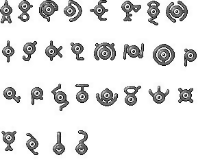 未知图腾 アンノーン Unown 全国编号201 属性 超能 众所周知,未知图腾一共有28中形态,字母A~Z,另外还有问号叹号两种.当抓到任何一种时,图鉴上就有了它的图鉴. 钻石珍珠中,未知图腾在花蕊镇(ズイタウン Solaceon Town)右侧的遗迹里可以遇到,白金也是一样,图腾分布与DP完全一样.