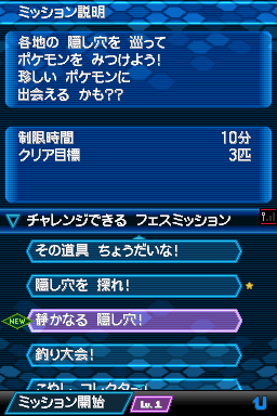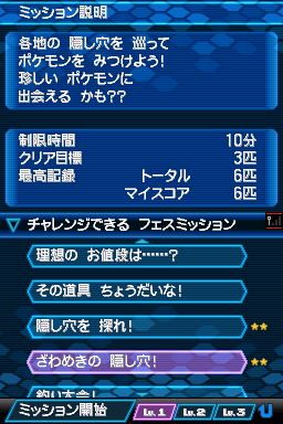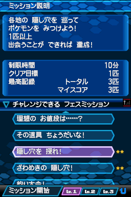 关于隱し穴内的PM,超链接世界有两个任务:一、探寻隱し穴(10分钟内在隱し穴内遇到1只PM,捕获、逃跑、打死任意均可。Lv2 10分钟内遇3只;Lv3 10分钟内遇10只)完成心得:Lv1 只要发现隱し穴内的PM之后,走出树洞,进入超链接世界,接下任务,返回捕获或者直接逃跑即可。Lv2 平时遇到了PM先不要捕获,去刷新其他的隱し穴,等到刷满3只后一起捕获。注意路线安排,清除适量的训练师,还有带足杀虫剂,时间来得及。Lv3 ……建议组队,一个人不要轻易尝试。。二、嘈杂的隱し穴(B2限定)/安静的隱し穴(W2限定) (10分钟内在隱し穴内遇到3只PM,需要完成上面的任务的Lv1后才出现;Lv2 10分钟内遇5只;Lv3 10分钟内遇10只)完成心得:Lv1 由于会出现大量的臭鼬噗/魅力喵来帮助完成任务,所以其实这个任务相对上面来说还是简单的。如果之前有放着几只PM没捕获的话,很容易完成Lv2 需要一定的RP,由于时间紧,没有准备PM的话,基本只能靠臭鼬噗/魅力喵完成任务,建议到以下地方转一转,臭鼬噗/魅力喵数量很多,应该足够完成。推荐地点:2号路(直接由唐草镇骑车过去)、3号路两处(由三曜市骑车到达一处,然后冲浪到达另一处)、5号道路(飞云市骑车到达)、6号路路上(帆巴市骑车到达,注意绕过那个无穷交战的NPC)、7号路(吹寄市穿过高草丛到达,注意不要走陆地,会遇上无穷交战的NPC)、9号道路(双龙市骑车到达)、13号道路两处(由笼目镇到达,需要居合斩。)、巨大洞穴(从13号路两处搜查完后可以直接进穿过洞,进入巨大洞穴)Lv3 相对上面一个Lv3简单了些。。但是还是不要轻易尝试。尽量多往以上十个地点走,如果有获得“隐藏洞穴之力”(加大隱し穴刷新概率)的德鲁力量,就毫不犹豫的用了吧~